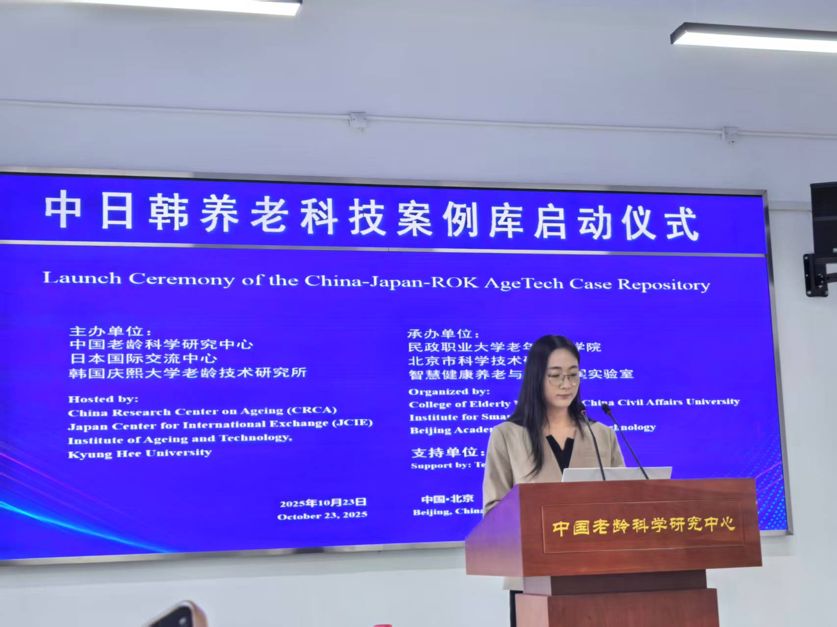 10月23日上午,由中国老龄科学研究中心牵头,会同日本国际交流中心、韩国庆熙大学老龄技术研究所共同发起的中日韩养老科技案例库启动仪式在北京举行。民政职业大学老年福祉学院和北京市科学技术研究院智慧健康养老与服务工程实验室作为案例库的承办单位,腾讯公司作为支持单位。中日韩养老科技案例库启动仪式由中国老龄科学研究中心副主任李明镇主持。