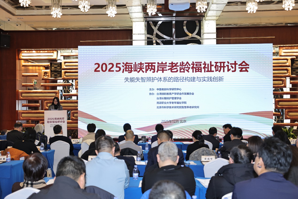 12月23日,由中国老龄科学研究中心主办的2025海峡两岸老龄福祉研讨会在北京举行。研讨会以失能失智照护体系的路径构建与实践创新为主题,来自海峡两岸的学术界、实务界代表100人齐聚一堂,共同探讨两岸失能失智照护的现状、模式、创新与挑战。